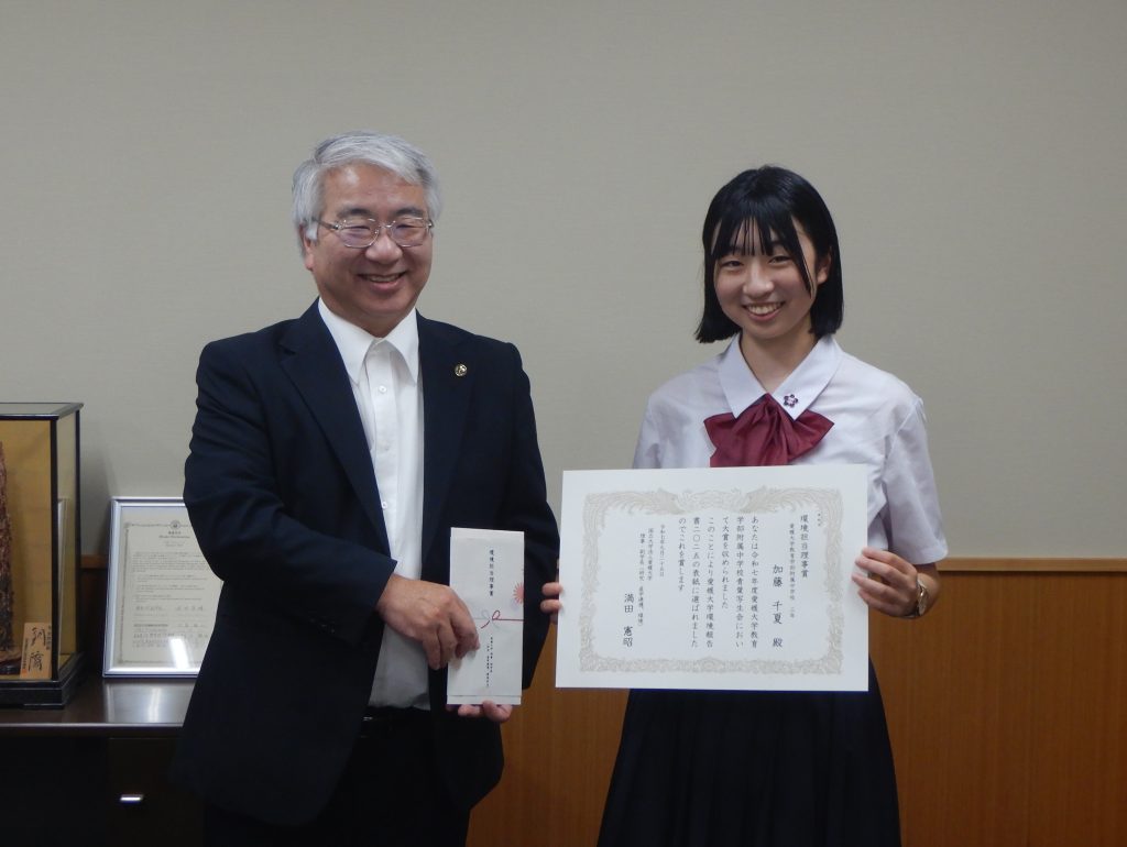 令和7年9月25日(木)、愛媛大学環境担当理事である満田憲昭理事の執務室において「環境担当理事賞」の表彰式を行いました。