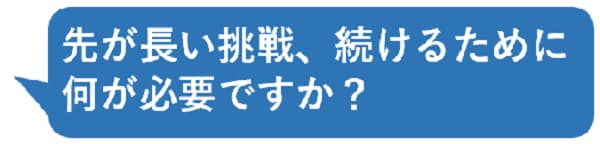 先が長い挑戦には、仲間とともに諦めない心を持ち続けることが必要だと思う。