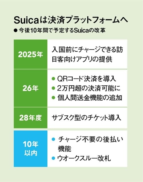 次の大きな転換点は26年秋。モバイルSuicaで、PayPayのようなQRコード決済をできるようにするのだ。QRコード決済では、従来のSuicaでは不可能だった2万円を超える決済も可能になる。個人間の送金機能も追加する。