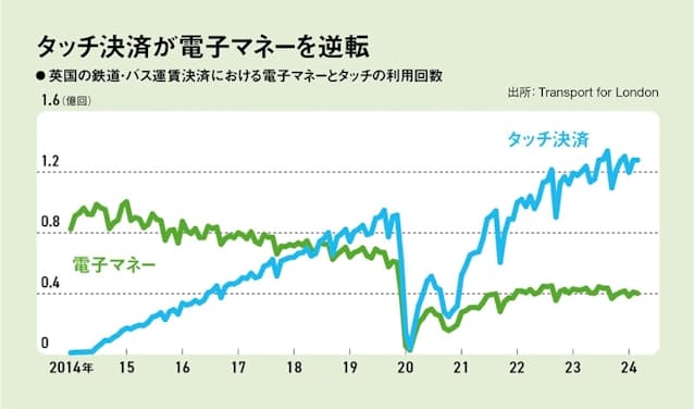 実際、14年までにクレカ乗車を導入した英国ではクレカがみるみるうちにシェアを伸ばし交通系電子マネーの「オイスターカード」を抜き去った。同カードの利用回数は現在、クレカタッチ決済の3分の1程度だ。