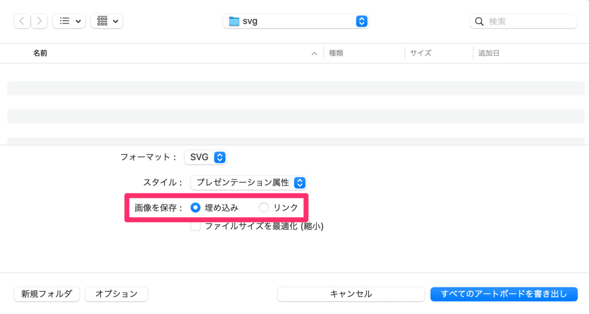 ここで フォーマット を SVG にして保存すればOKです。